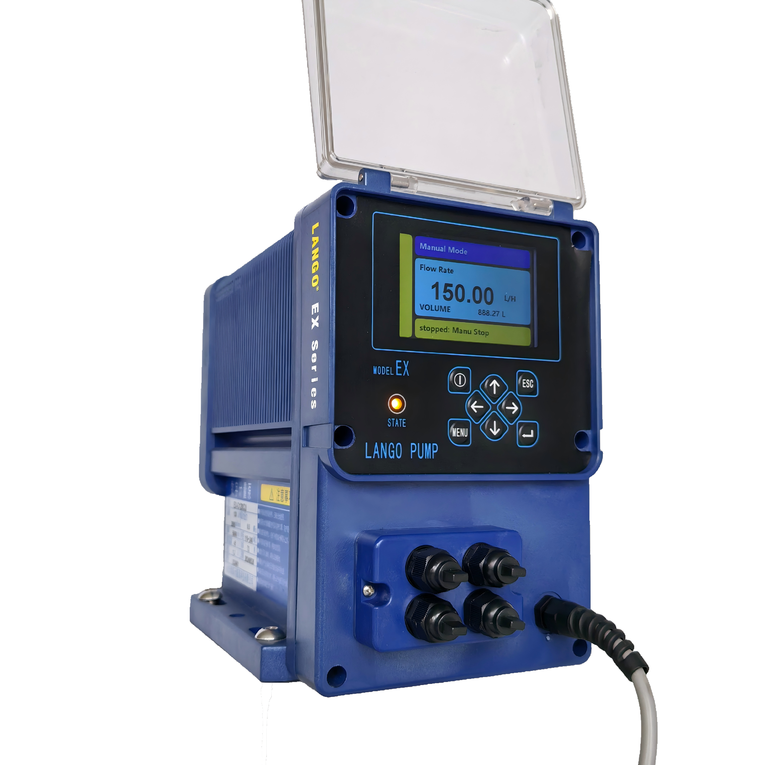 The smart digital metering pump EX is a compact positive displacement, diaphragm dosing pump with BLDC motor and intelligent control electronics with minimum energy consumption.The efficency can be up to 90%. By using helical gears and auxiliary springs, the power consumption is reduced by 70% compared with conventional rebound designs.The EX series pump is FOC closed-loop control and operates at full stroke length to ensure optimum accuracy, priming and suction. The duration of each discharge stroke varies according to the capacity set, resulting in optimum smooth and continuous discharge flow. All our models can replace grundfos digital pump with higher flow rate.